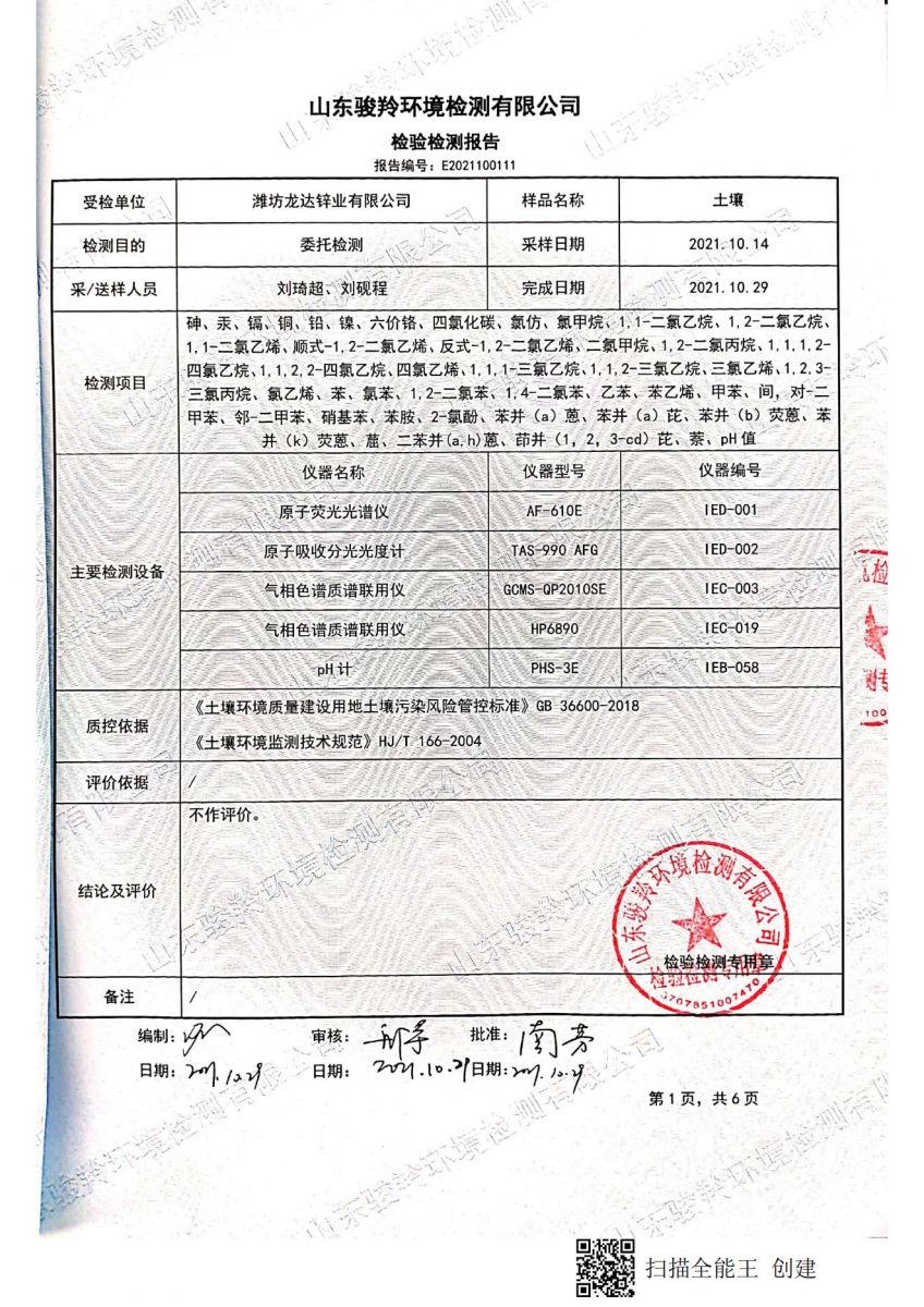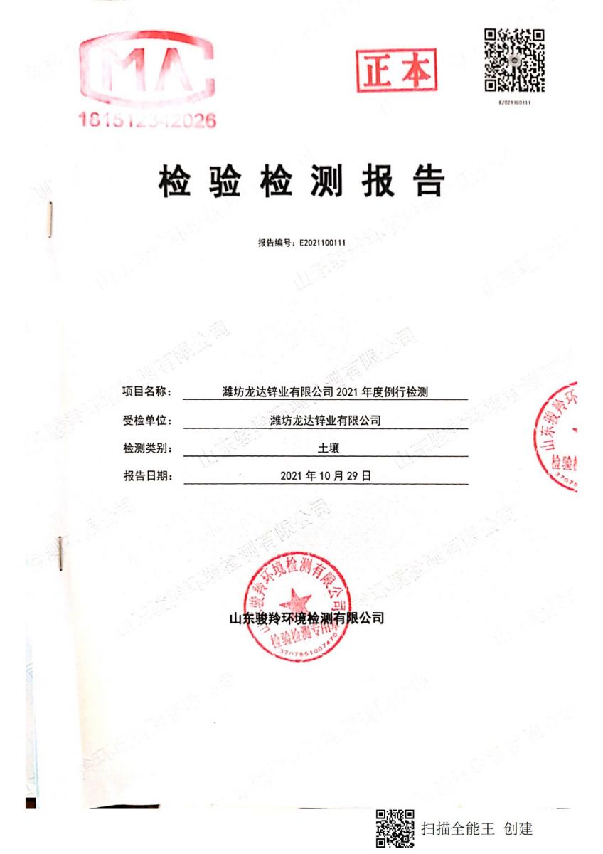 濰坊龍達(dá)鋅業(yè)有限公司2021年土壤監(jiān)測報告