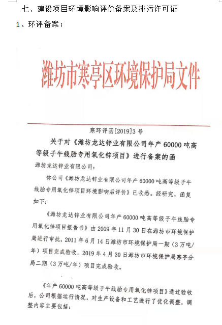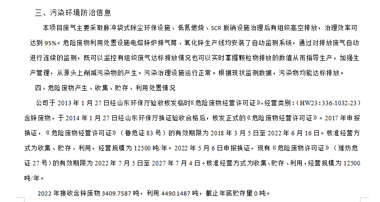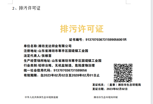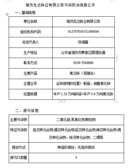 濰坊龍達鋅業(yè)有限公司污染防治信息公開